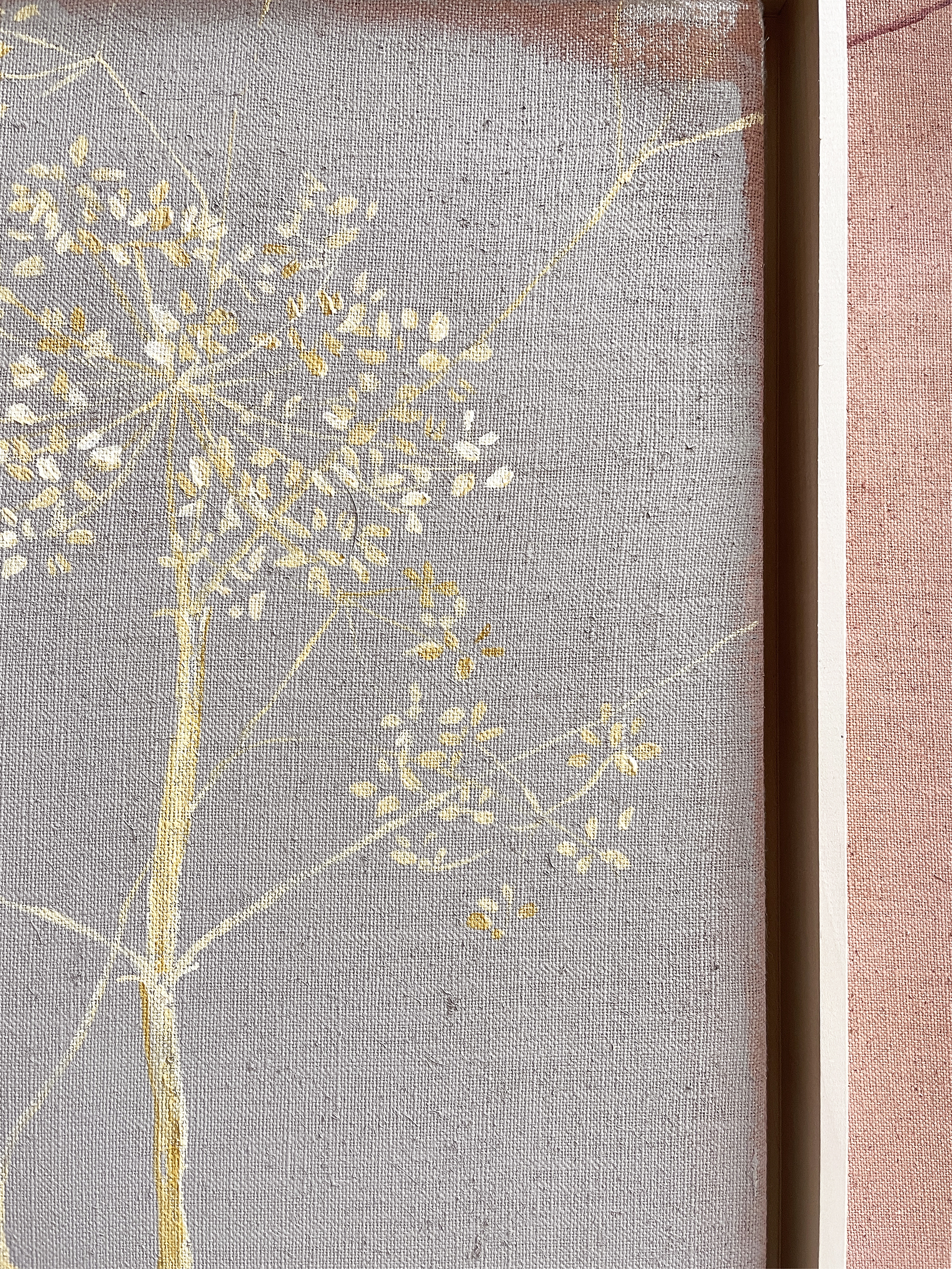 Another study of the dried out Angelica in my studio... this time painted in shades of straw, mustard and mushroom on a blue - grey background with old rose corners.