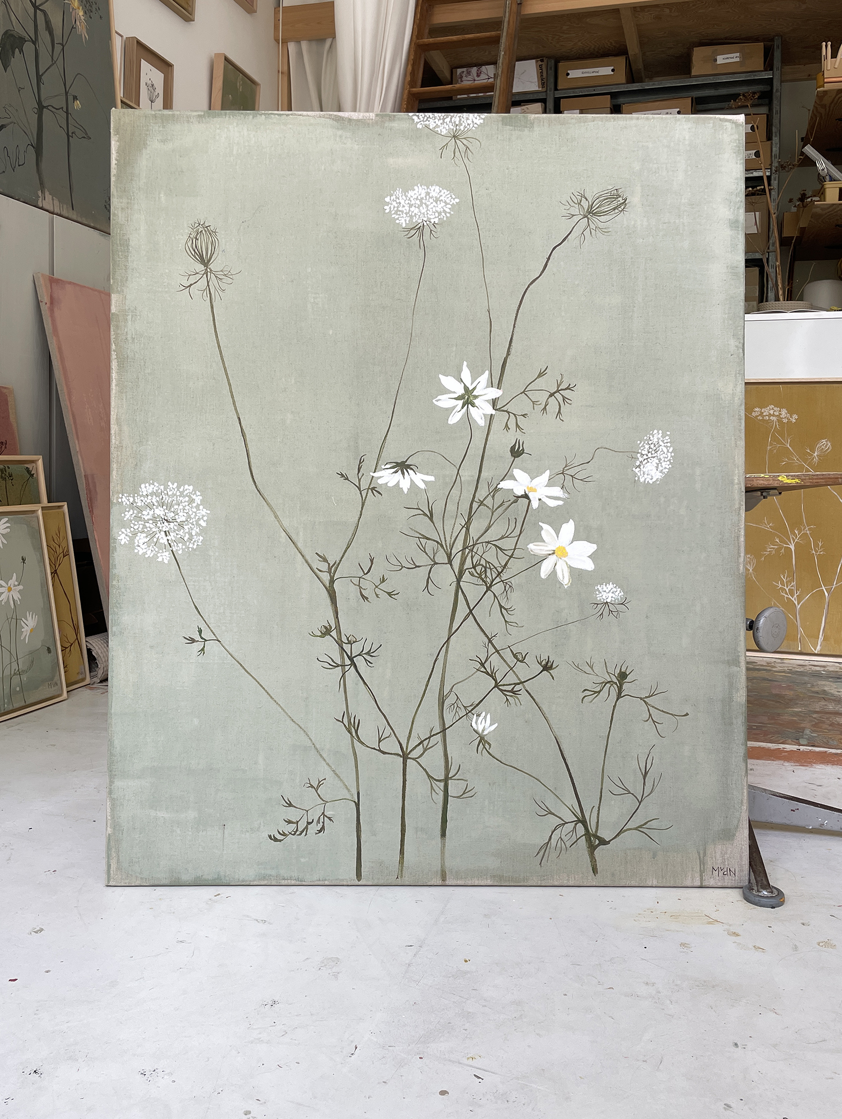 ECO matte paint, acryllic paint and bister on linen canvas.