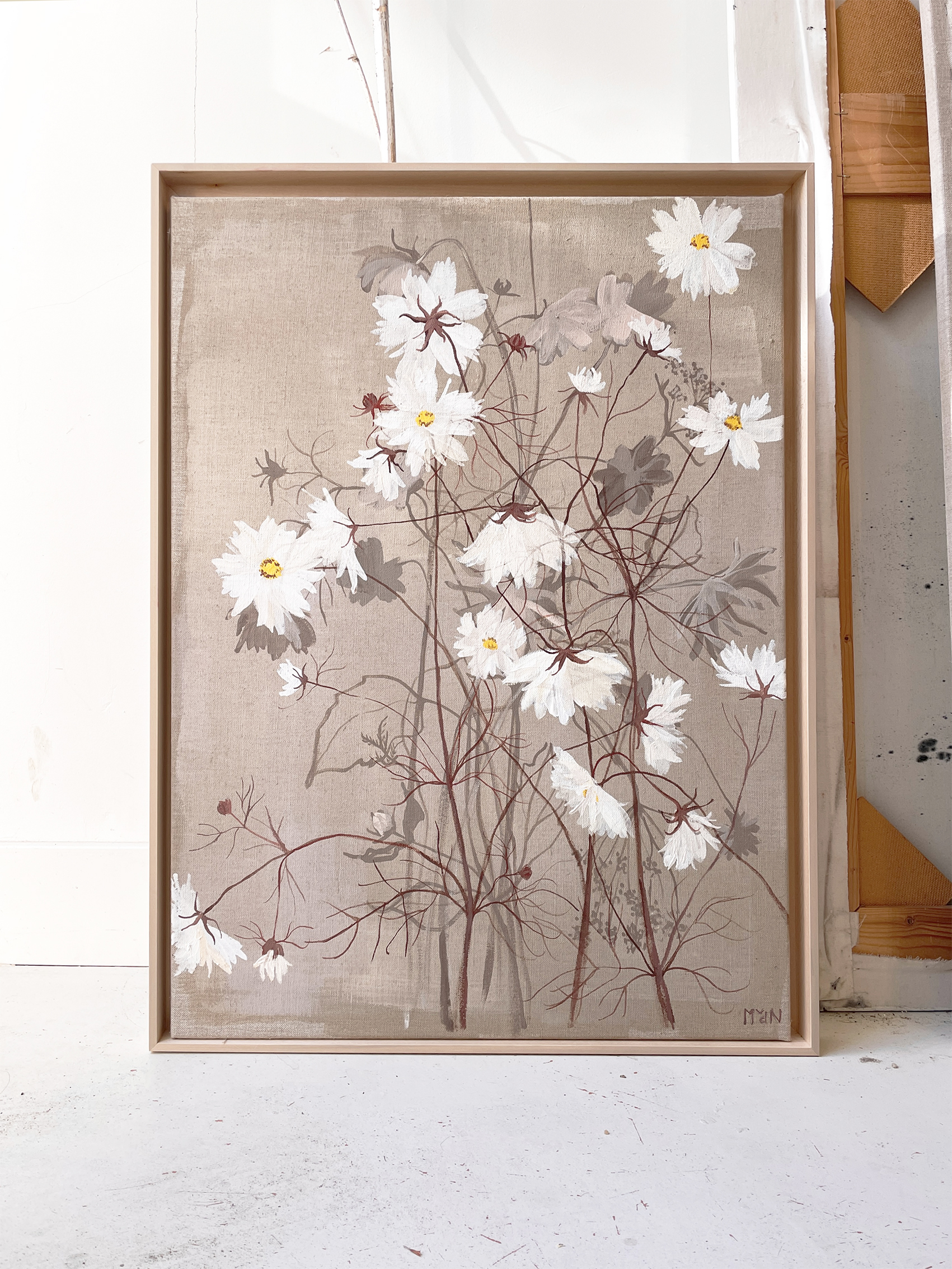 ECO matte paint, bister pigment and acryllic paint on a linen canvas.
