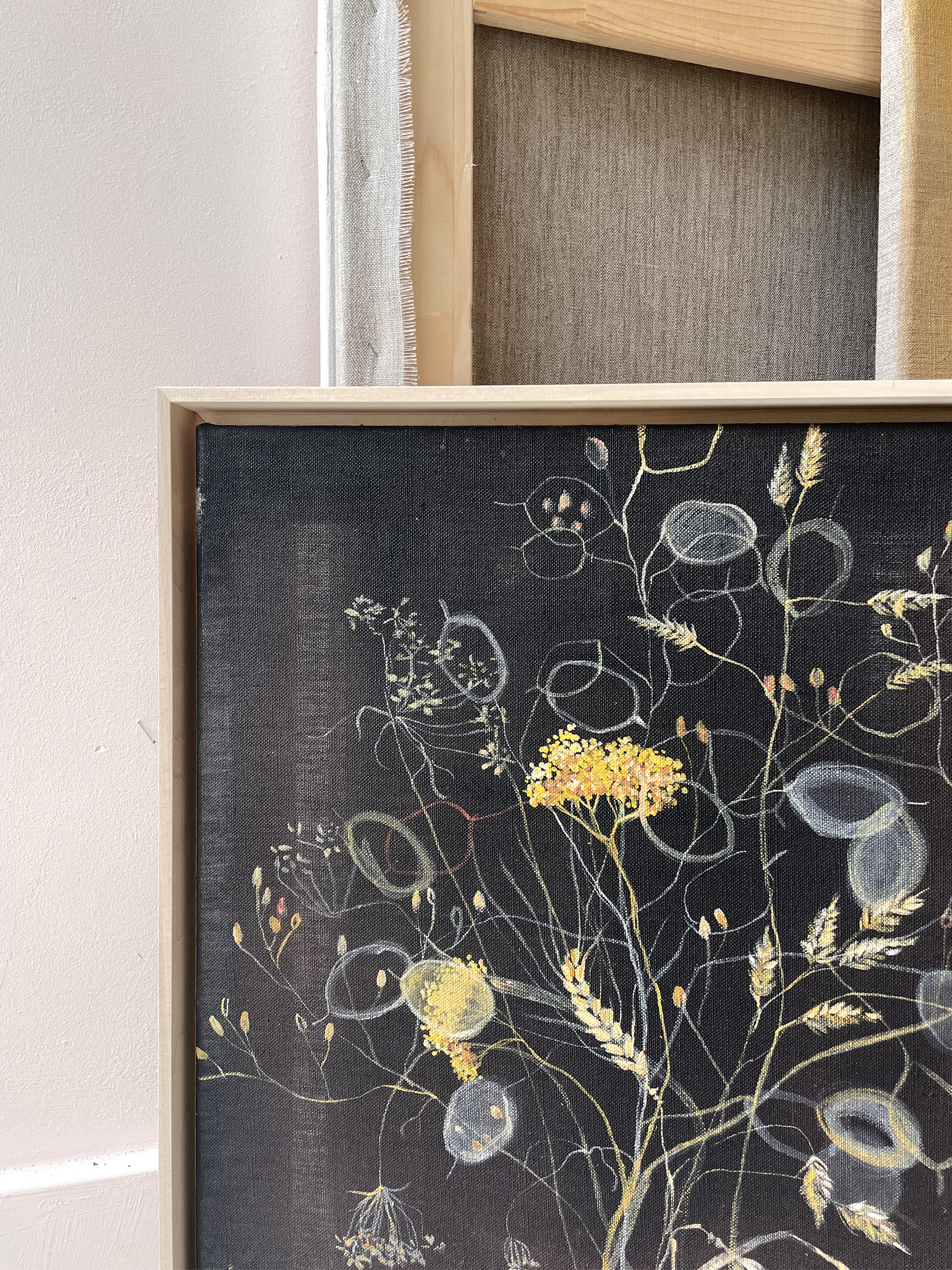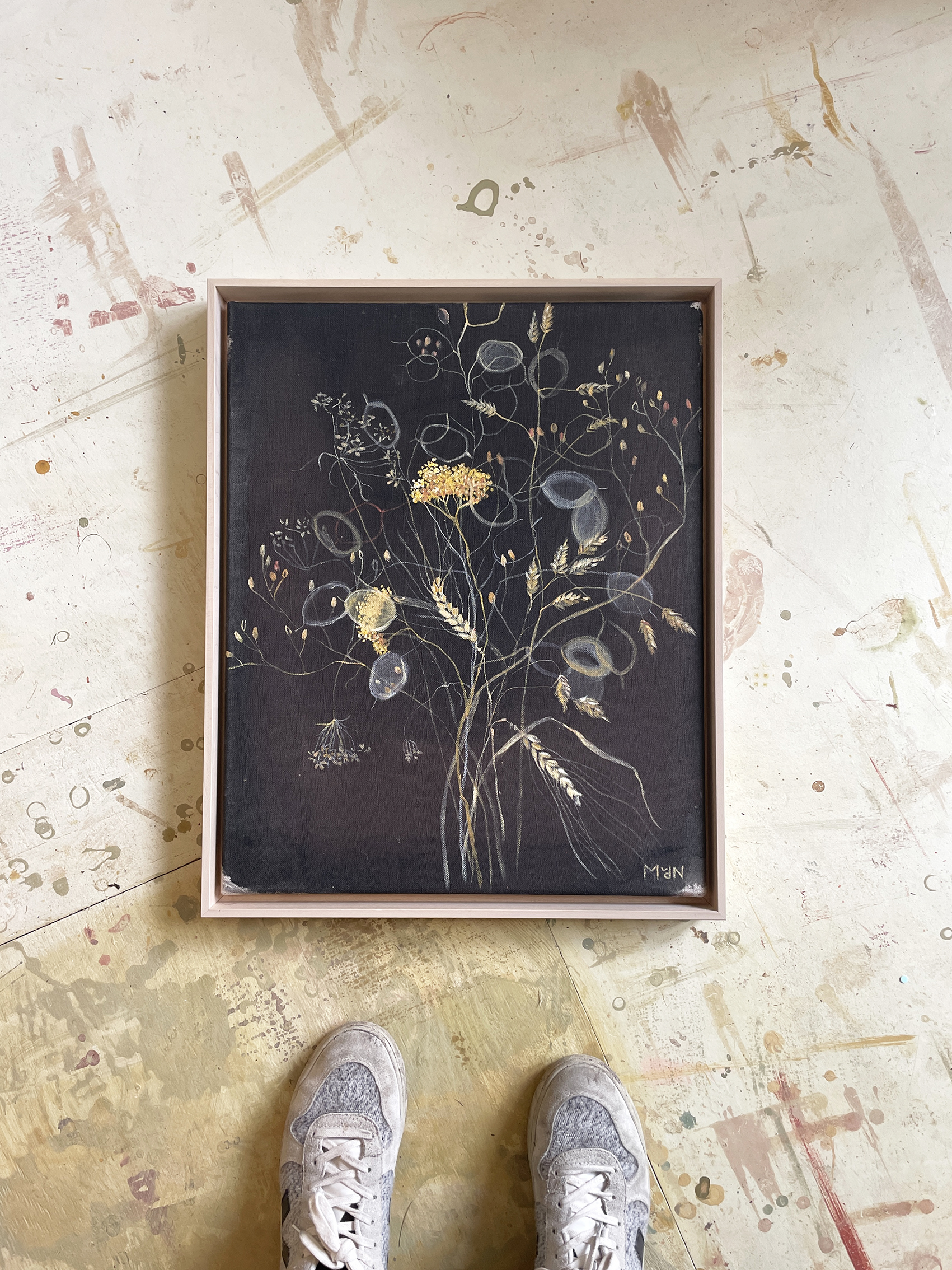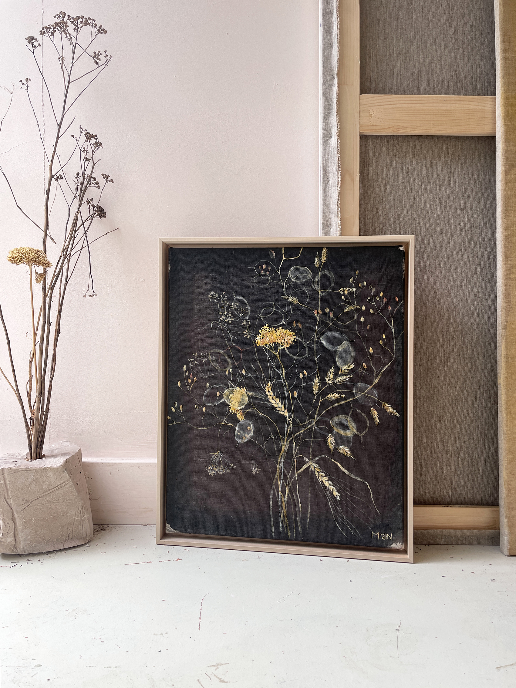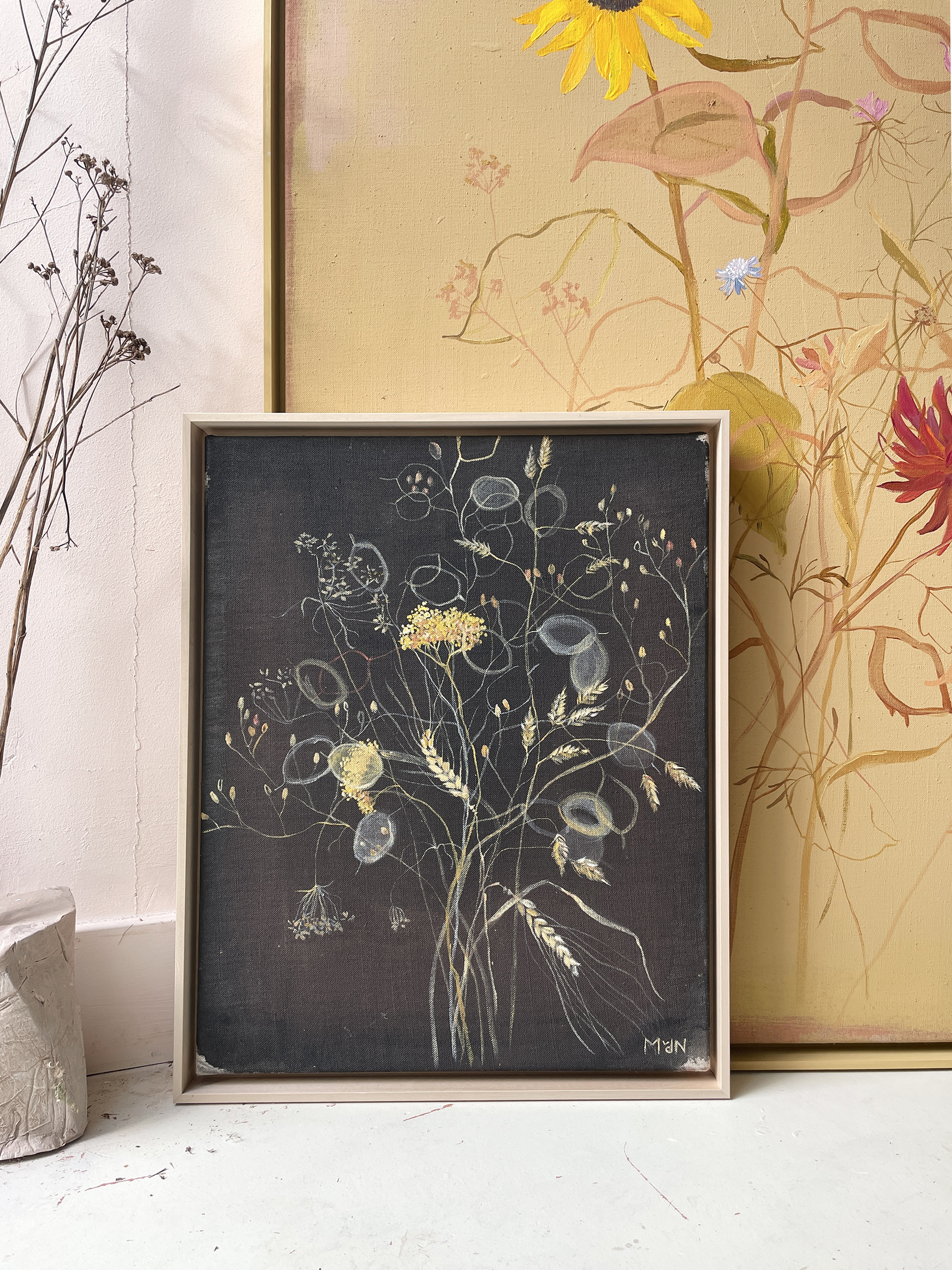 another study of a few of my dried out gems like lunaria, nipplewort, yarrow, barley and queen anne’s lace.