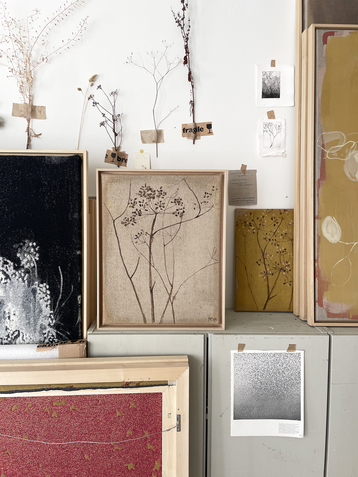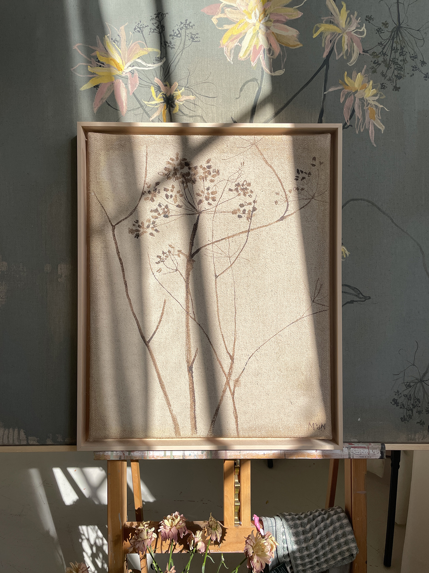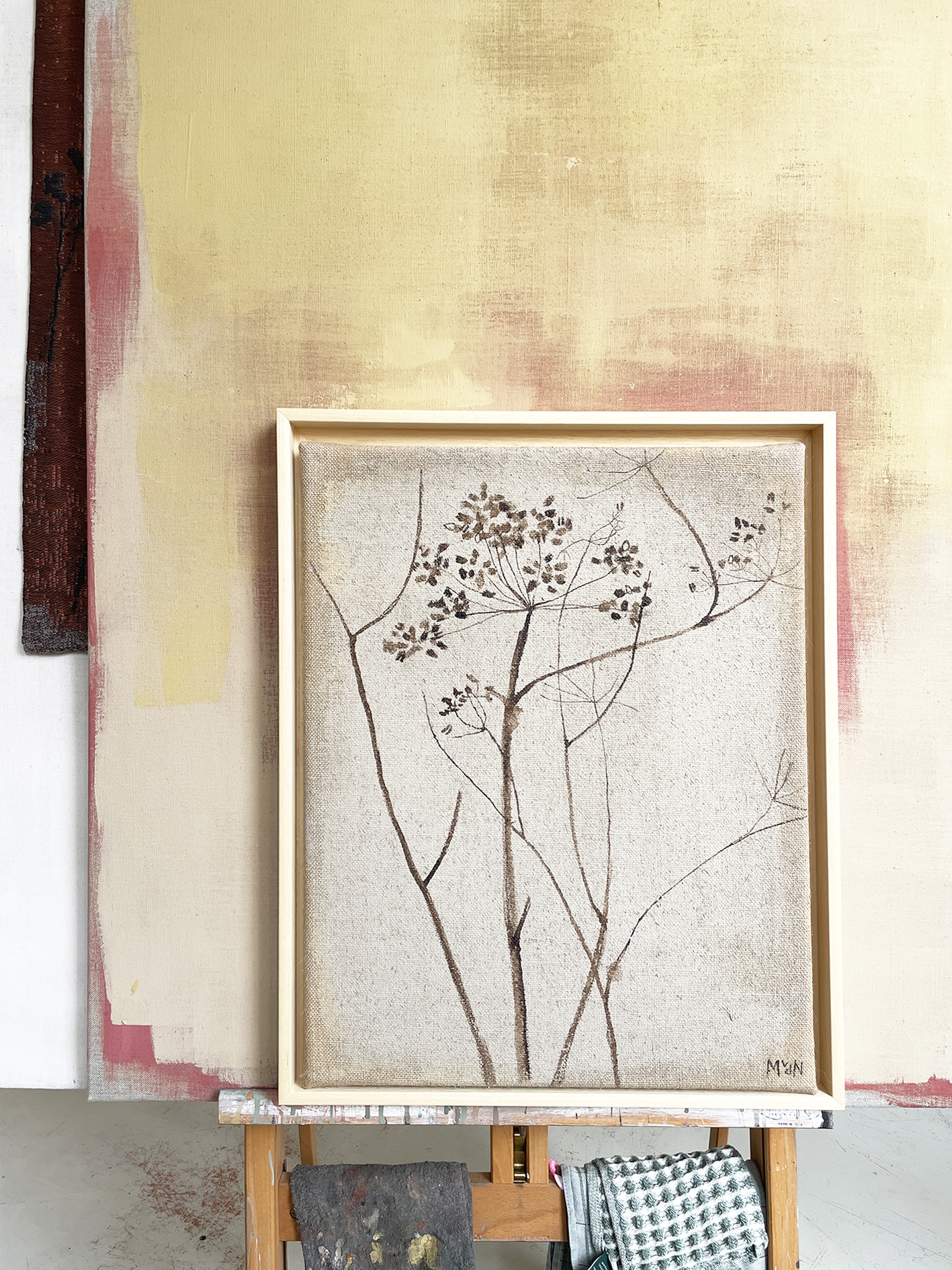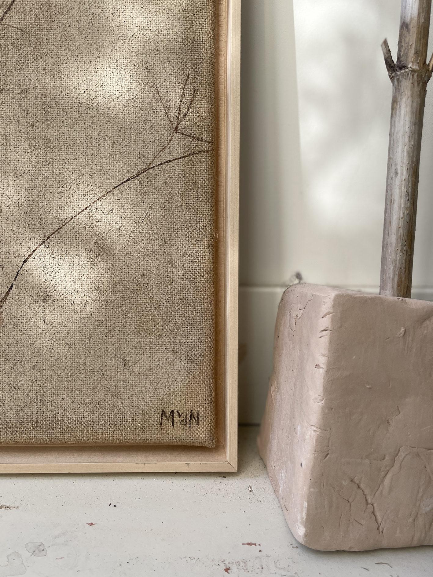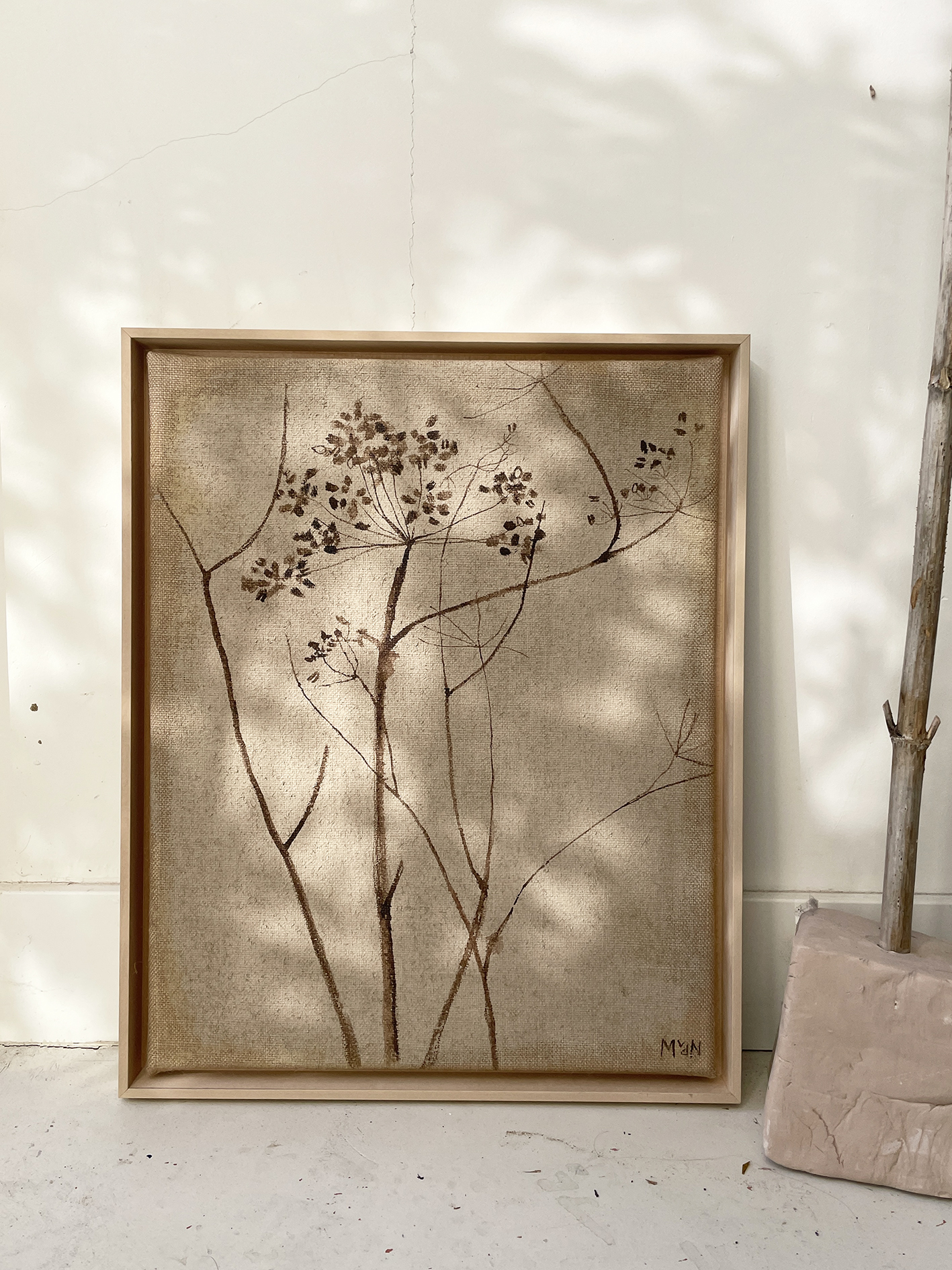 ECO matte paint and bister on jute canvas.