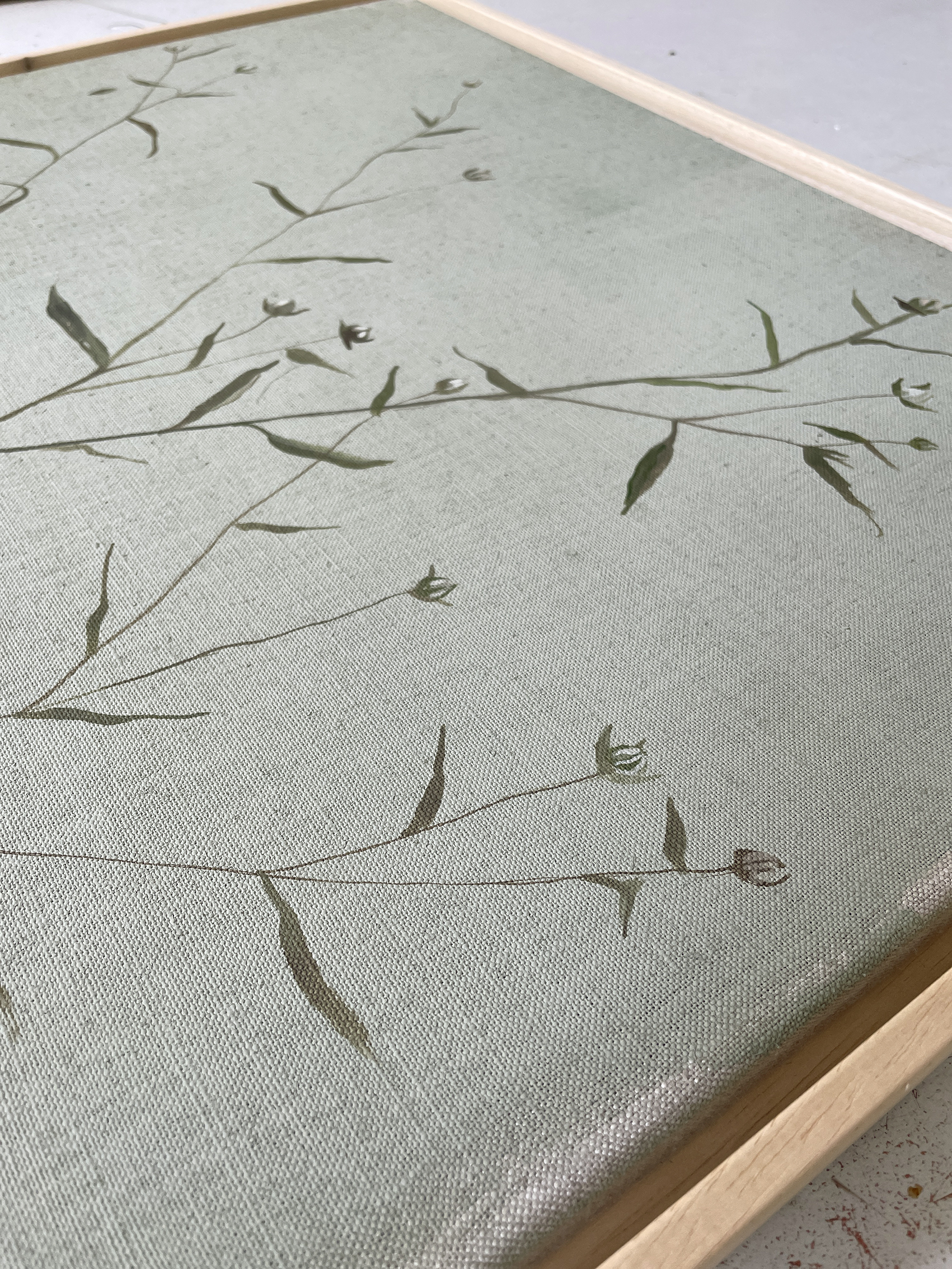 ECO matte paint and brown bister on a linen canvas.