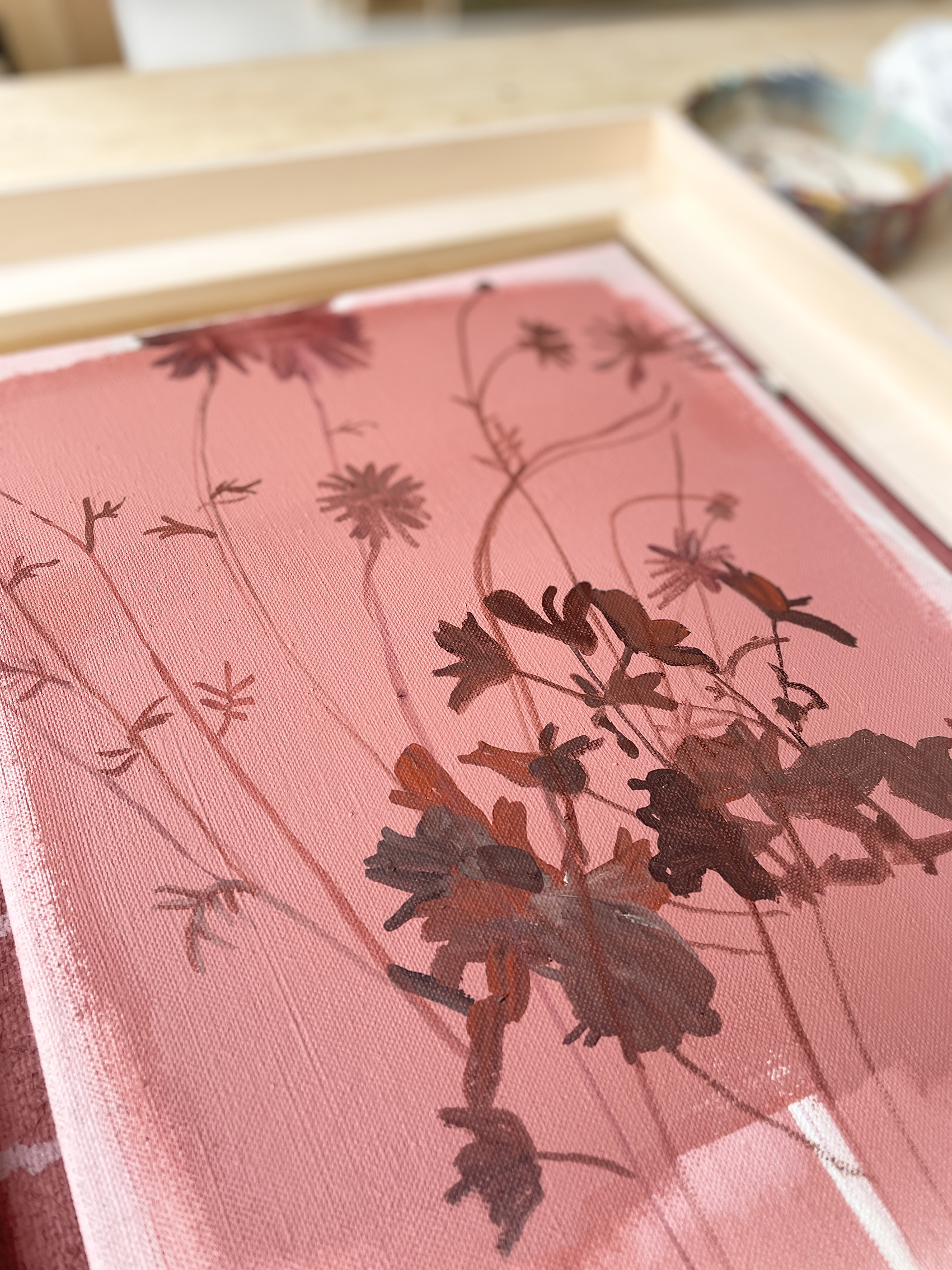 a celebration of sprimg and the sun throwing geranium- and daisie shadows on the canvas.