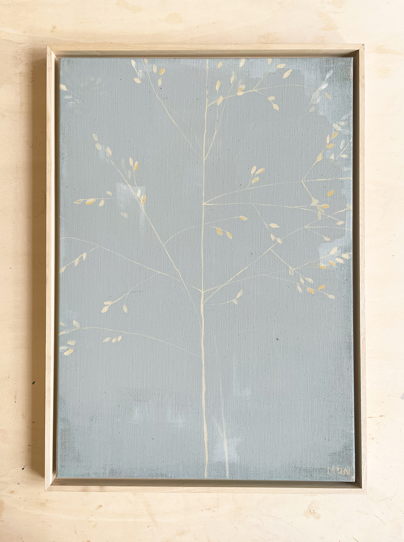 framed in a plain wooden frame