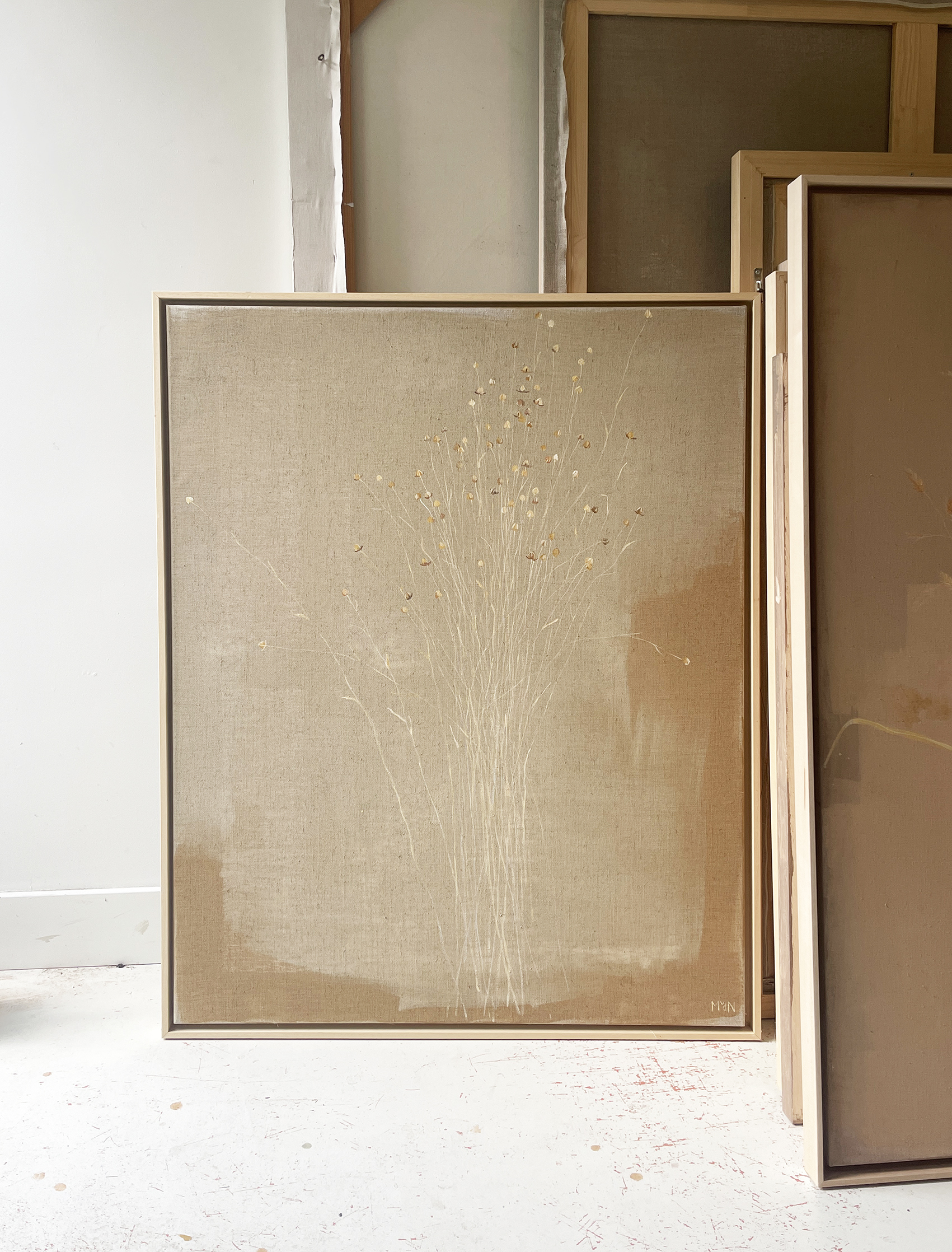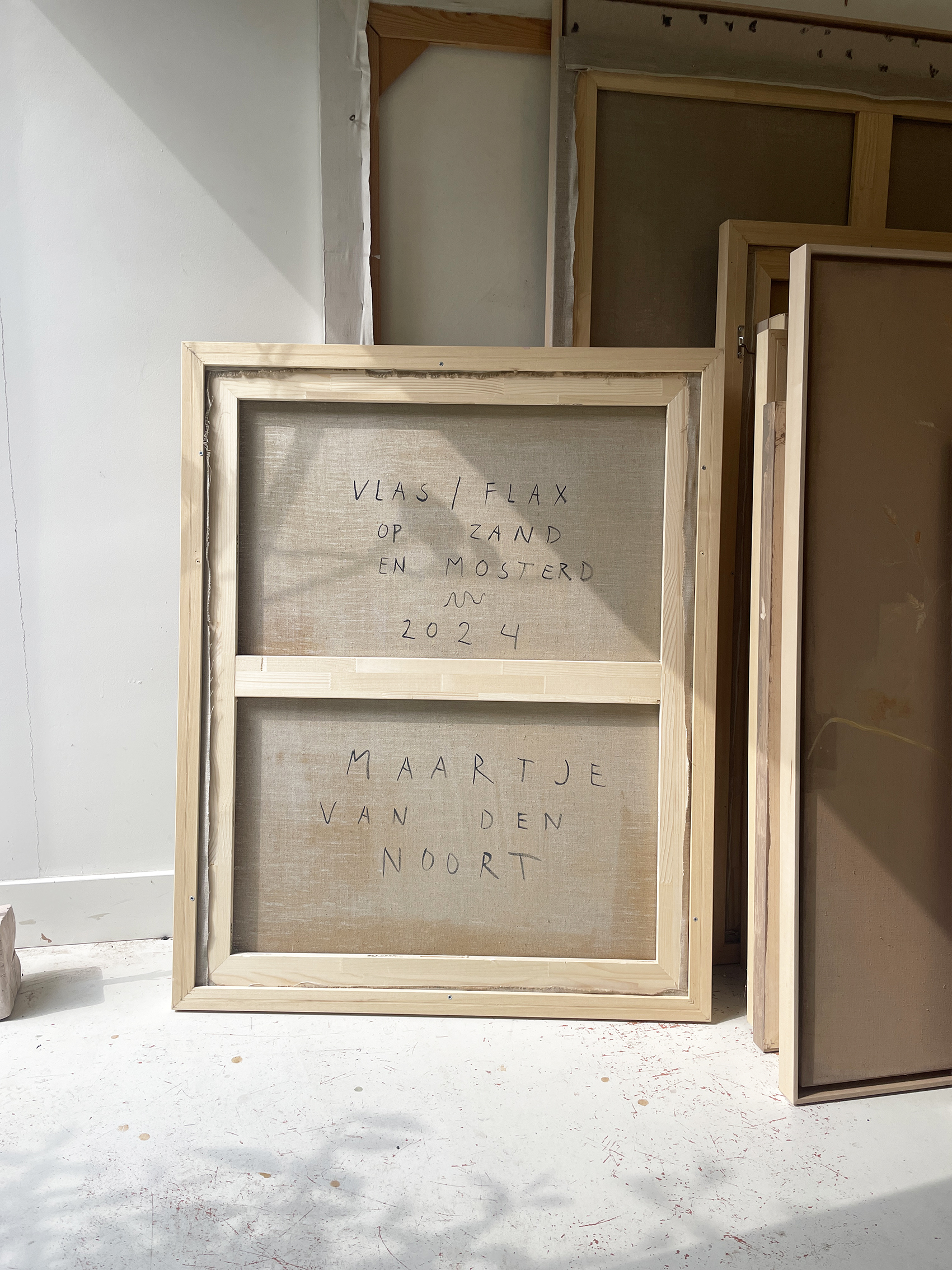 matte paint, bister pigment, madder pigment and acryllic paint on an untreated linen canvas.