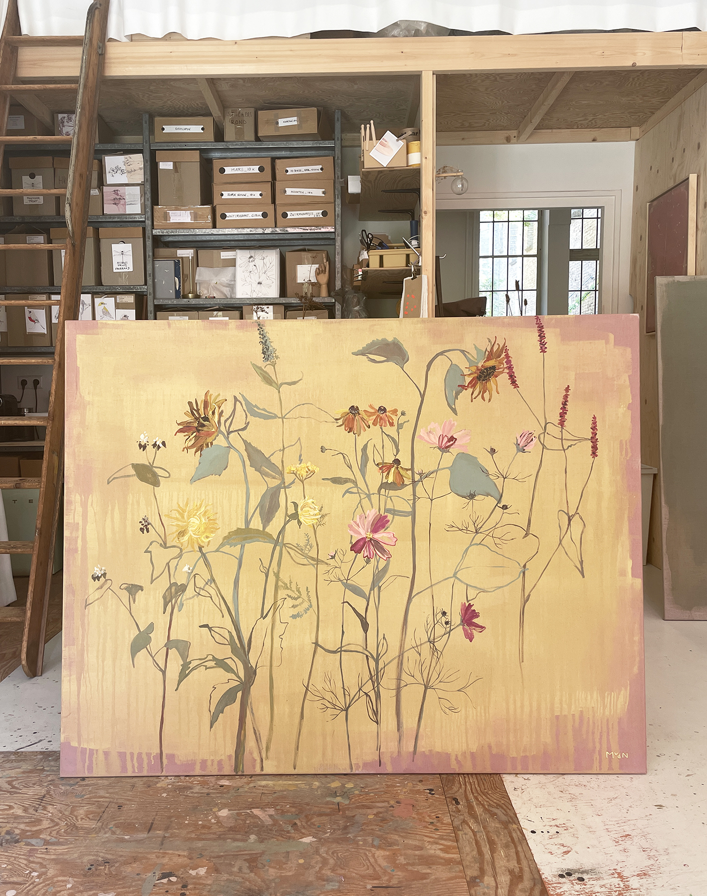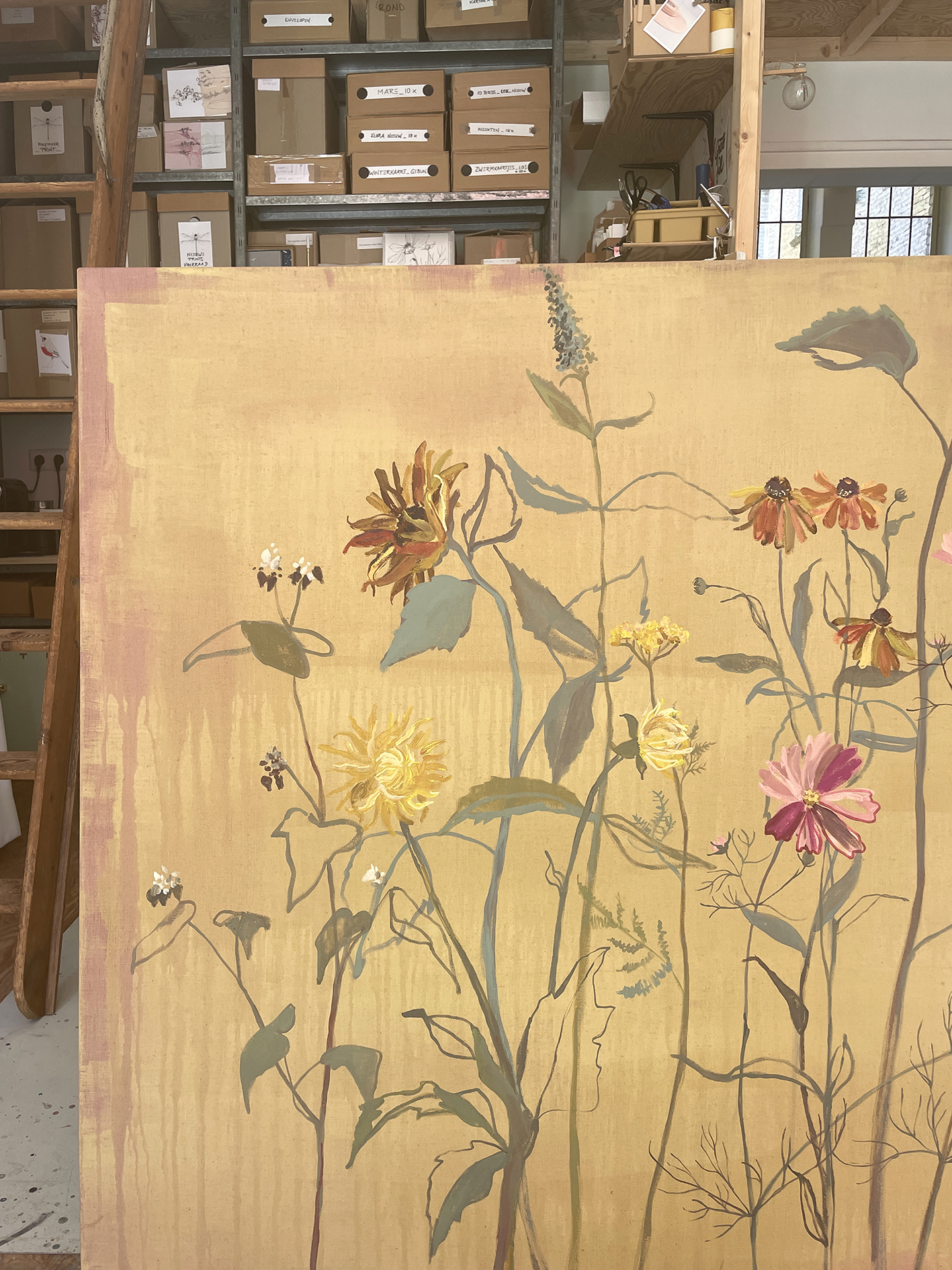 a cheerful hommage to summer, featuring flowers like dahlia, butterfly bush, buckwheat, knotweed, sunflowers and cosmea.